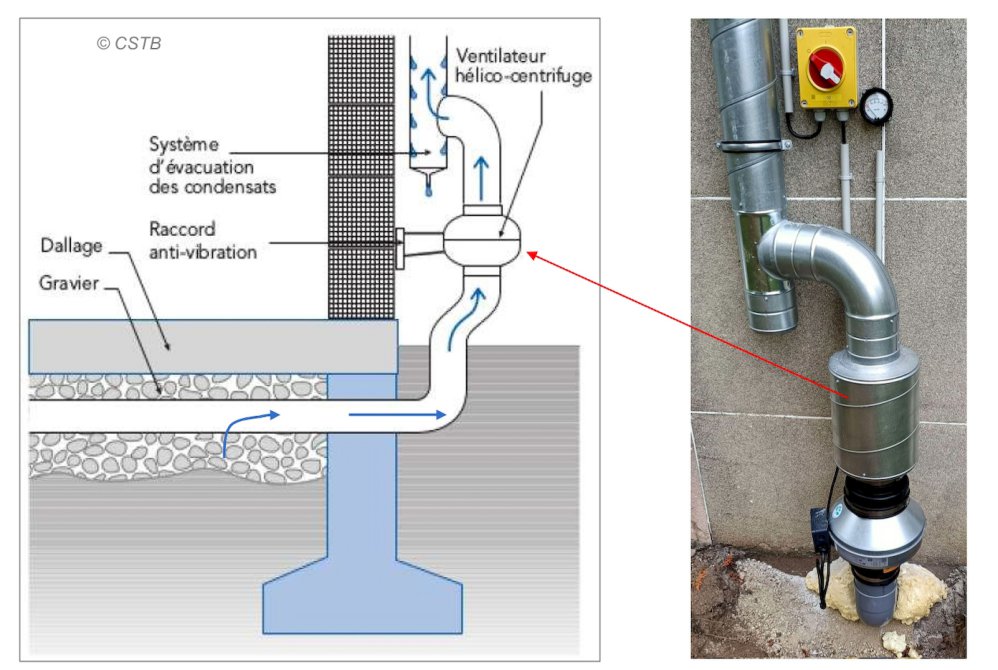 Le système de dépressurisation du sol a pour but d’inverser le sens d’écoulement de l'air entre le sol et le bâtiment.