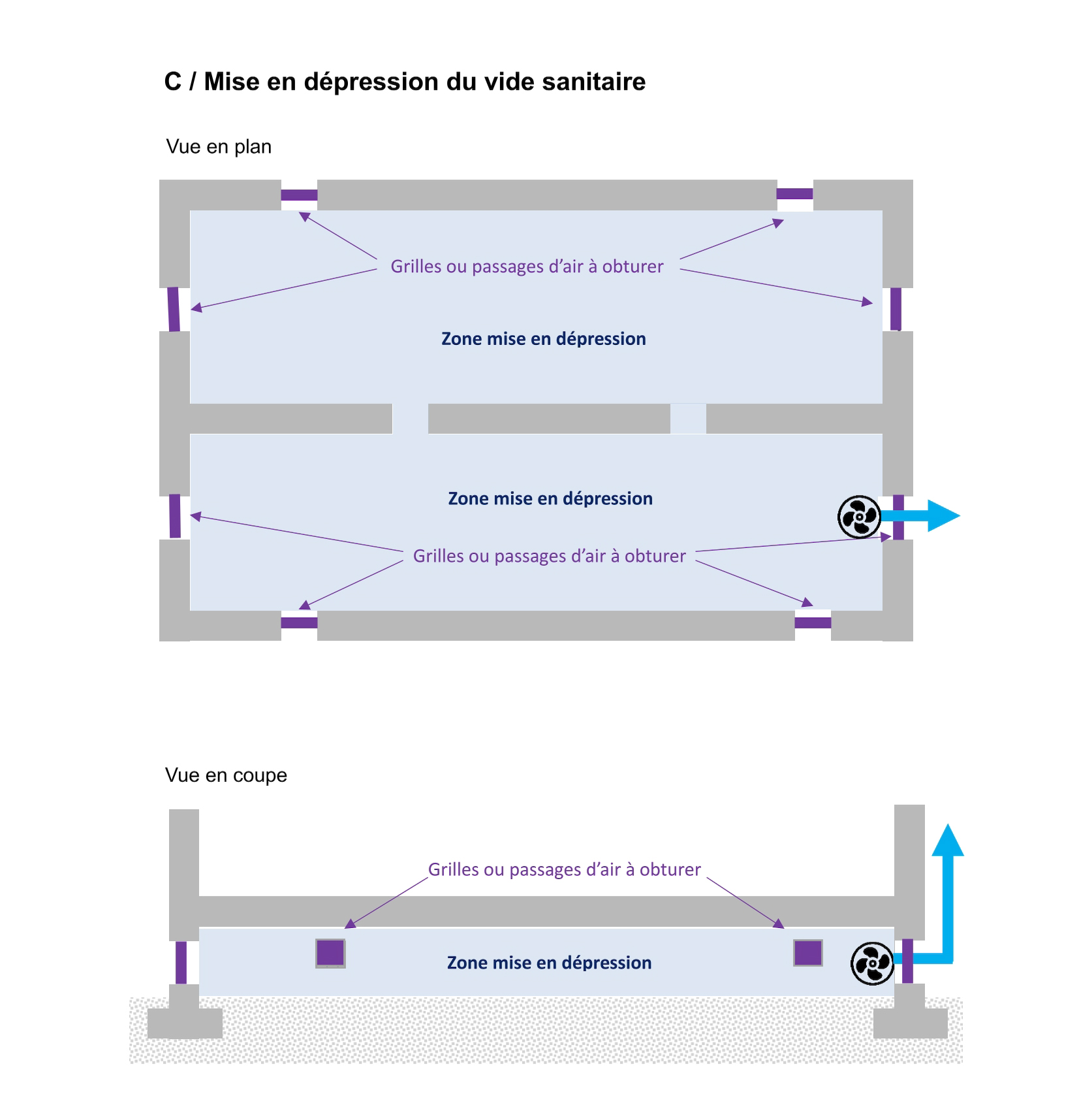 C/ Mise en dépression du vide sanitaire